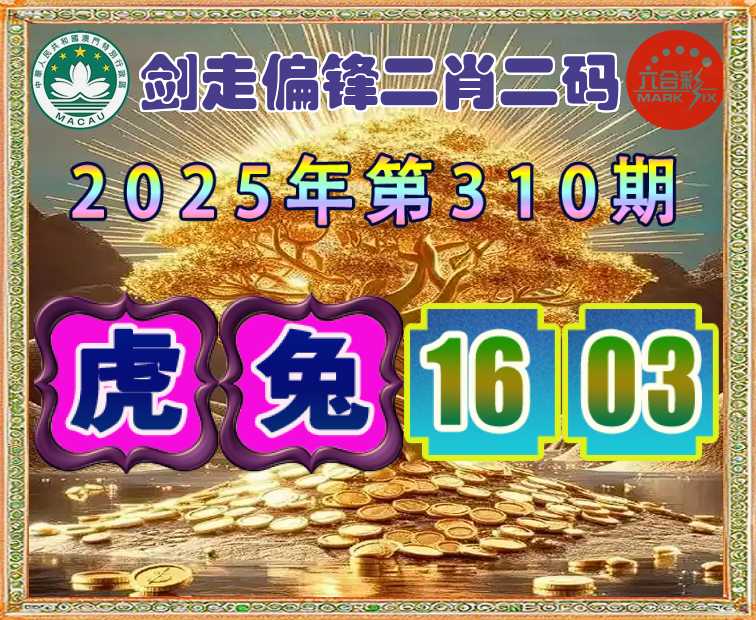 310期: 剑走偏锋 二肖二码【虎兔】【16.03】开:00准