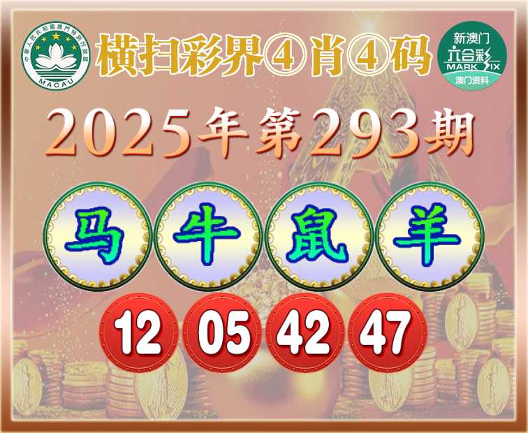 293期:【横扫彩界】 ④肖④码【马牛鼠】【12.05.42.47】开:羊47