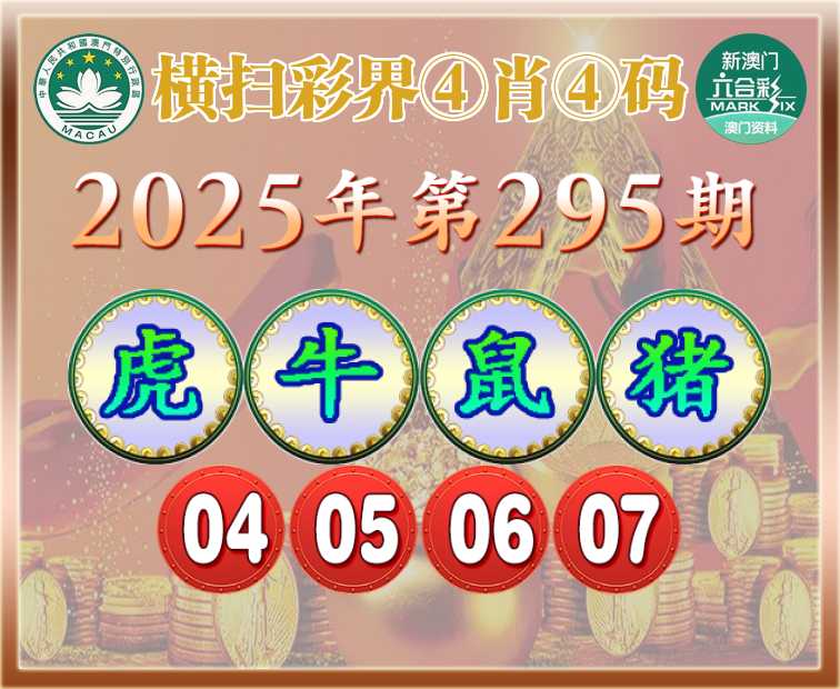 295期:【横扫彩界】 ④肖④码【虎鼠猪】【04.05.06.07】开:牛05