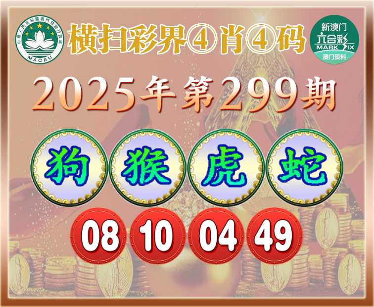 299期:【横扫彩界】 ④肖④码【狗猴虎】【08.10.04.49】开:蛇49