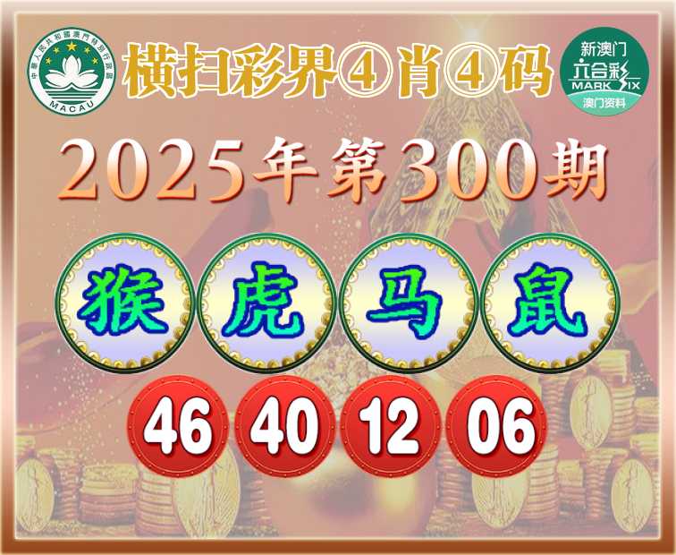 300期:【横扫彩界】 ④肖④码【猴马鼠】【46.40.12.06】开:虎40