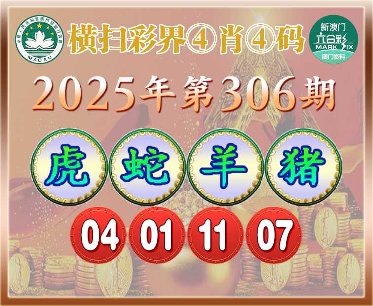 306期:【横扫彩界】 ④肖④码【虎蛇羊猪】【04.01.11.07】开:牛17