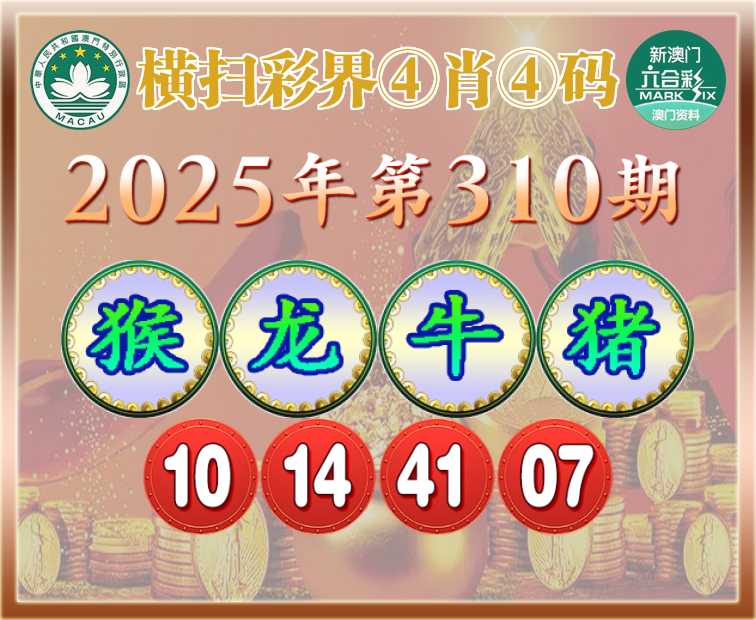 310期:【横扫彩界】 ④肖④码【猴龙牛猪】【10.14.41.07】开:00准