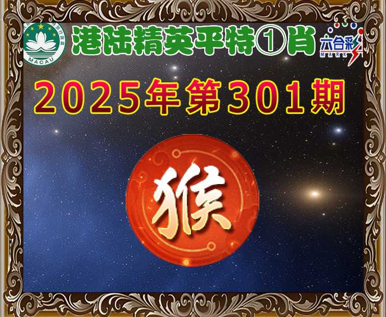 301期:【港陆精英】 平特①肖【猴】开:猴10