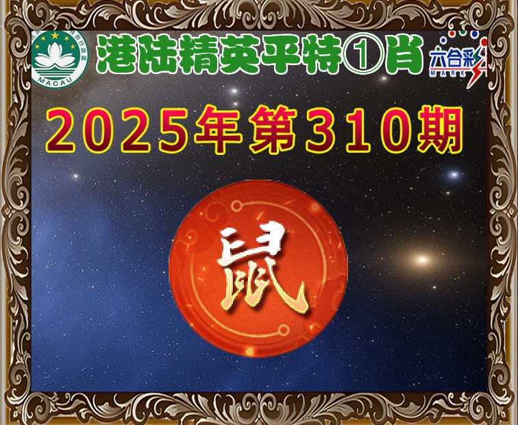 310期:【港陆精英】 平特①肖【鼠】开:00准