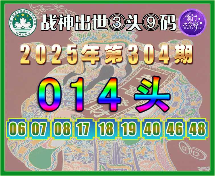 304期:『战神出世』 ③头⑨码【014头】开:马48