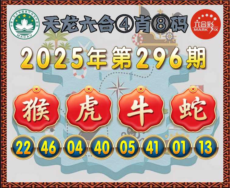296期:〖天龙六合〗 ④肖⑧码【猴虎牛蛇】开:猴22准