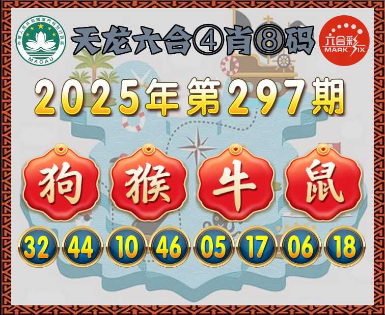 297期:〖天龙六合〗 ④肖⑧码【狗猴牛鼠】开:狗44准