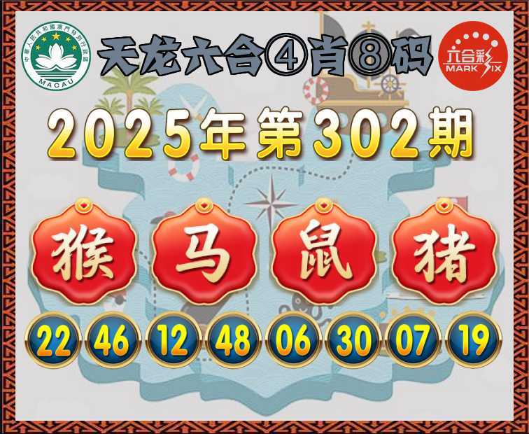 302期:〖天龙六合〗 ④肖⑧码【猴马鼠猪】开:猴22准
