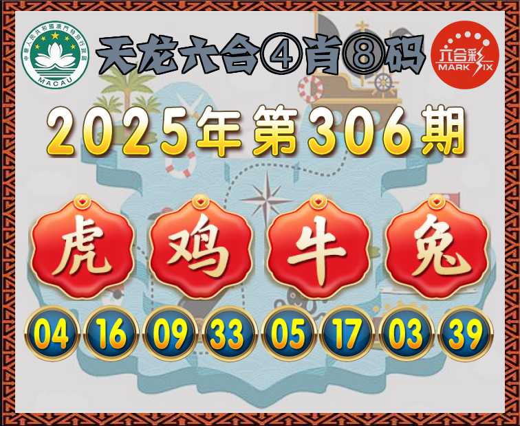 306期:〖天龙六合〗 ④肖⑧码【虎鸡牛兔】开:牛17准