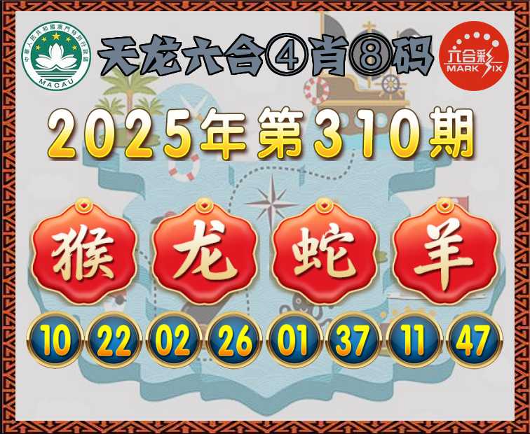 310期:〖天龙六合〗 ④肖⑧码【猴龙蛇羊】开:00准
