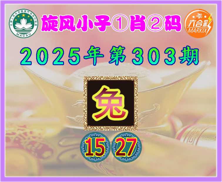 303期:《旋风小子》 ①肖②码【兔】【15.27】开:兔15准