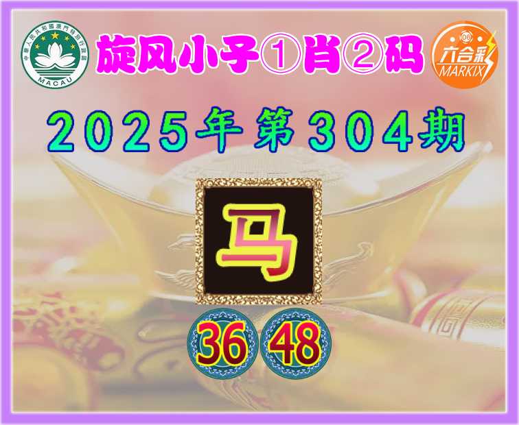 304期:《旋风小子》 ①肖②码【马】【36.48】开:马48准