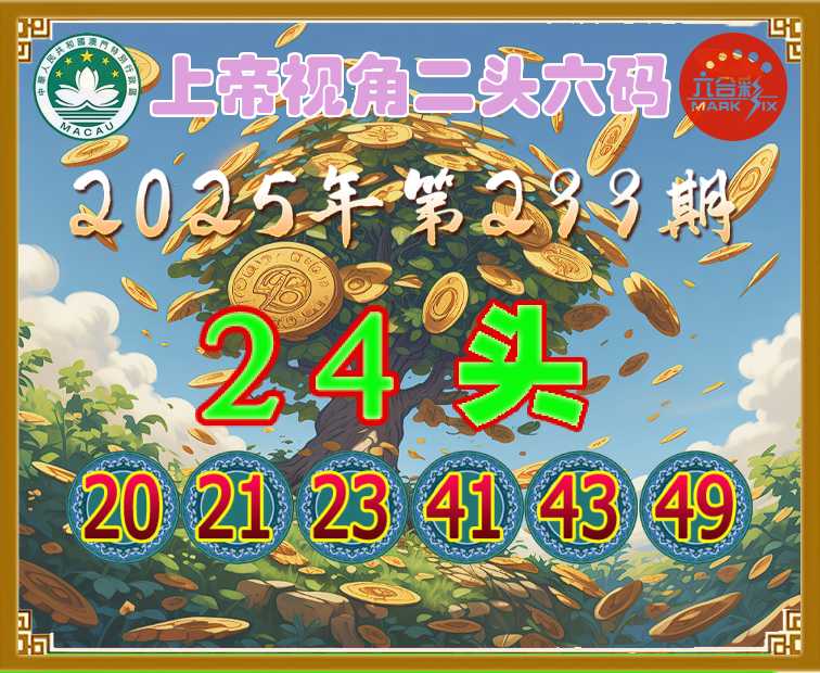 298期:《上帝视角》 二头六码【02头】开:羊23